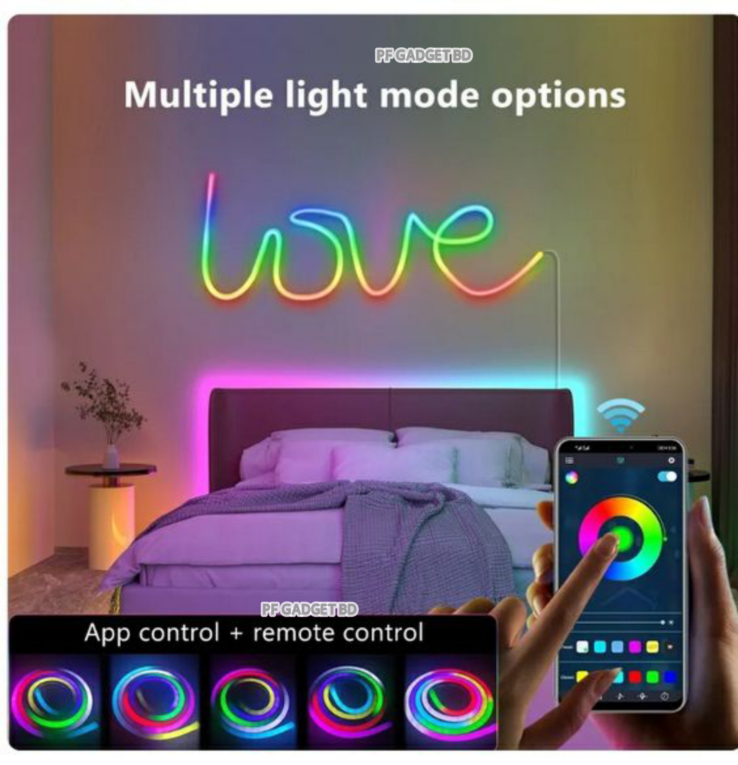 ✅ Mobile App + Remote Control – আপনার মুড অনুযায়ী রঙ বদলান মুহূর্তেই